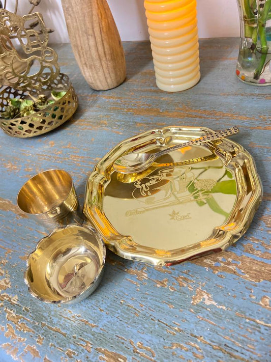 Bhog Thali for Laddu Gopalji (Gold, Small Size) Set of 4 Pieces (140gm)